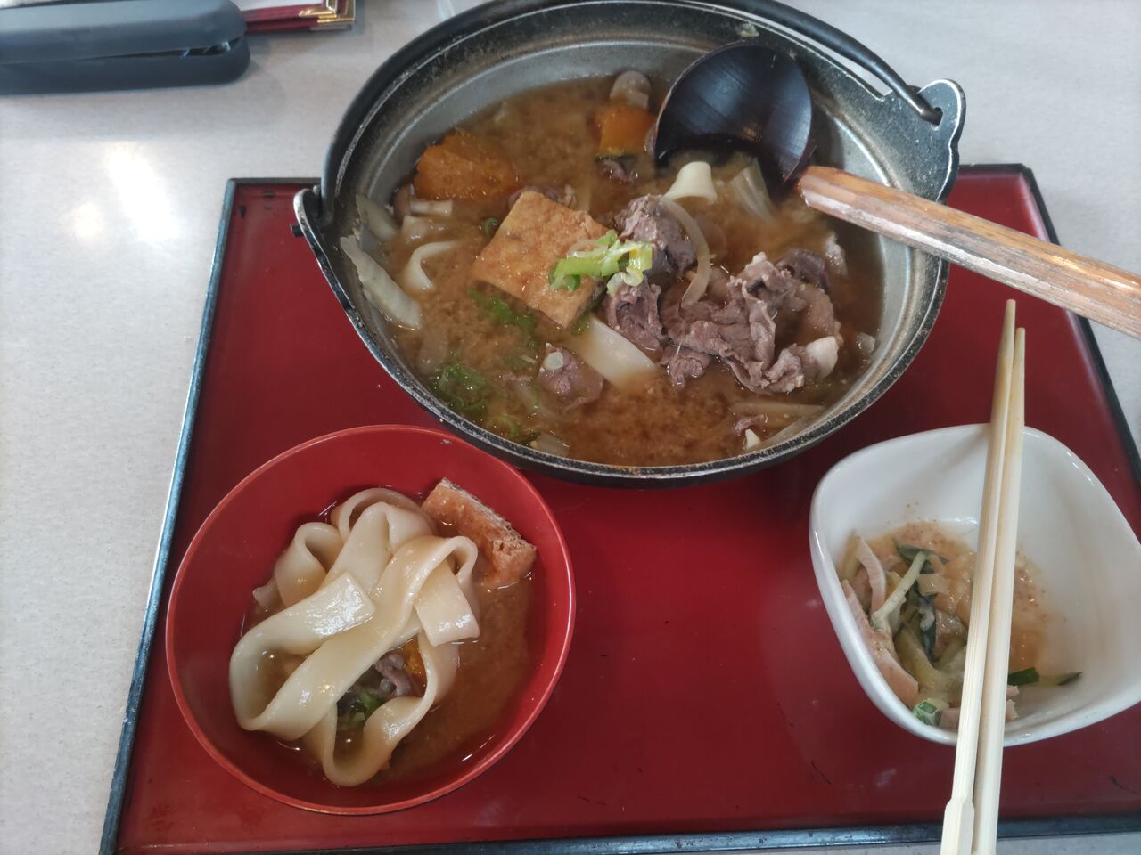 「いのししほうとう」おいしかった!広々してきれいな店内で、落ち着けるところ。電車とバスの接続待ちの時など、ぜひご利用ください!
