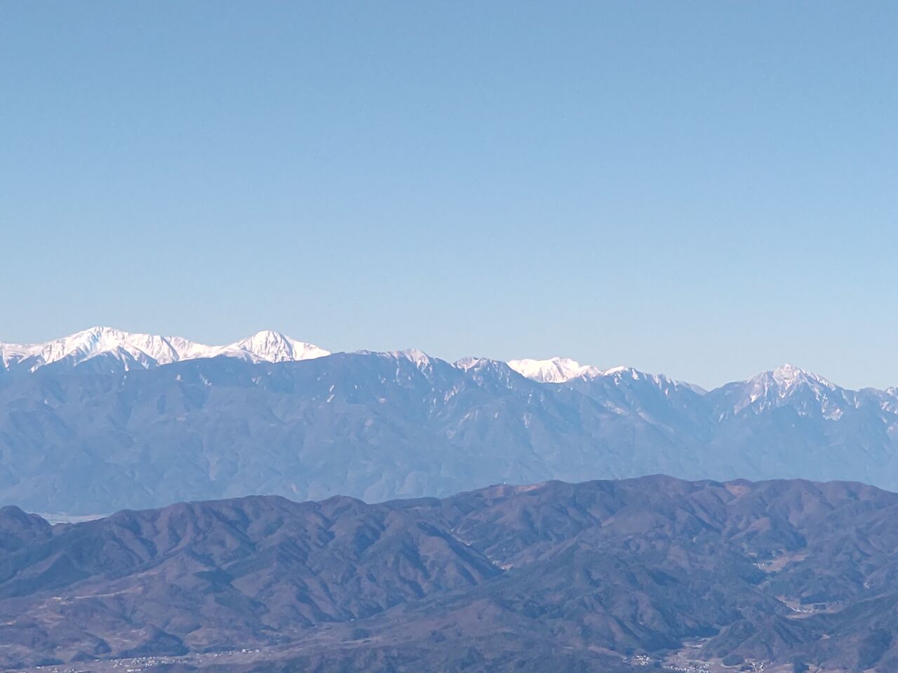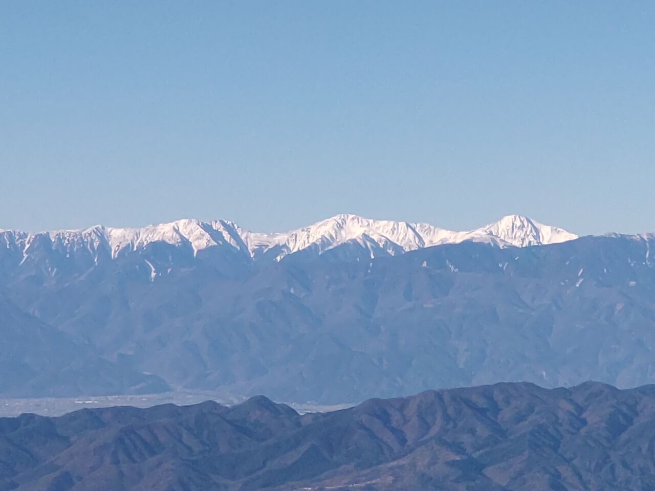 同じ場所から。左から、間ノ岳/北岳/鳳凰三山/仙丈(?)/甲斐駒