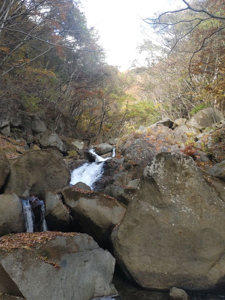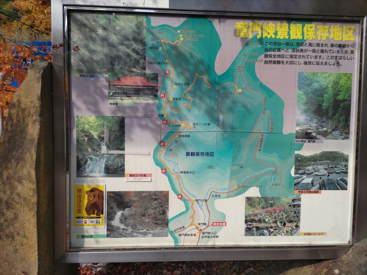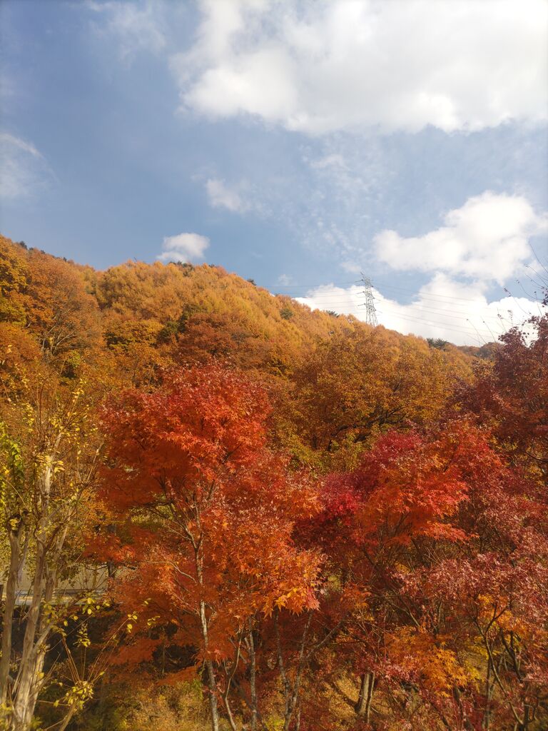 ヒュッテからの下山車中、あまりに紅葉がステキだったので、途中で車から降ろしてもらって「竜門峡~やまと天目山温泉」に立ち寄ってきました~。