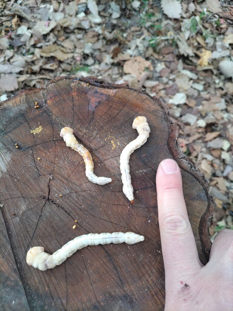 薪割りで出てきた幼虫たち。カミキリムシ?