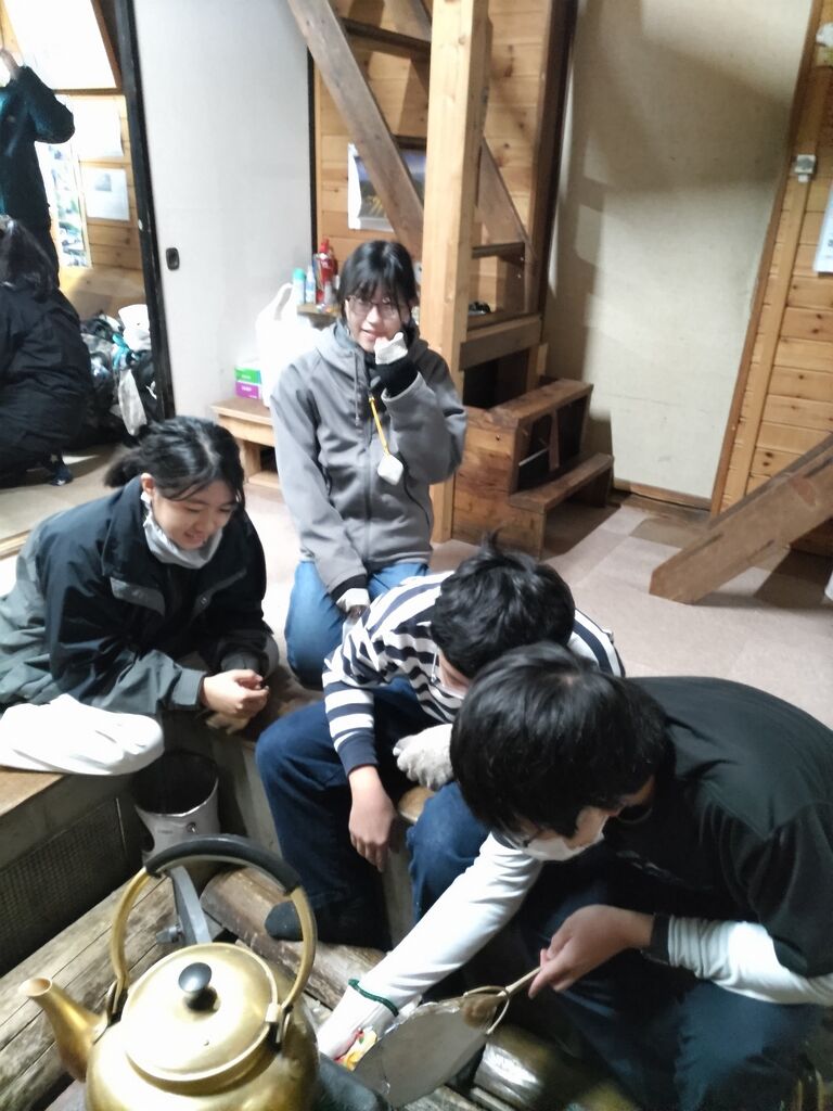 ヒュッテへ戻ってからは、26回生Sさん主導のもとの夕食作りと、薪ストーブ担当に分かれて活動。
