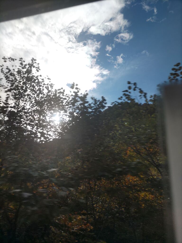 行きのバスからは、雲の端が虹色になる現象が見られました(写真にはうまく映っていないけど)。